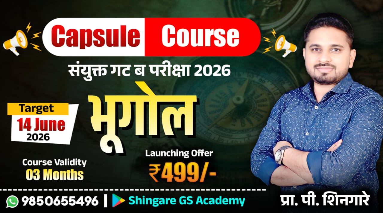 🔺COMBINE गट 'ब' परीक्षेसाठी उपयुक्त 🔺जग भारत व महाराष्ट्र भूगोल 🔺UPDATED LECTURES 🔺50+ Videos चा समावेश 🔺संपूर्ण अभ्यासक्रम पूर्ण 🔺NOTES AVAILABLE 🔺VALIDITY 3 MONTH